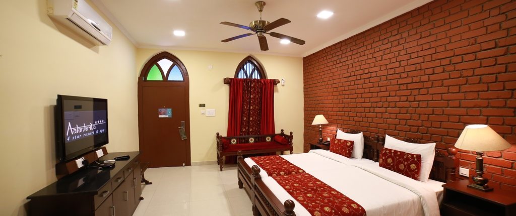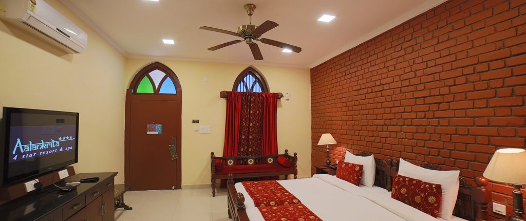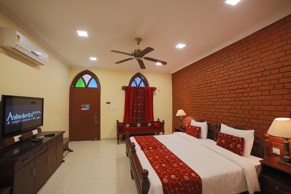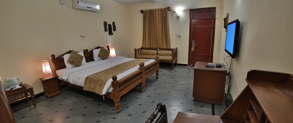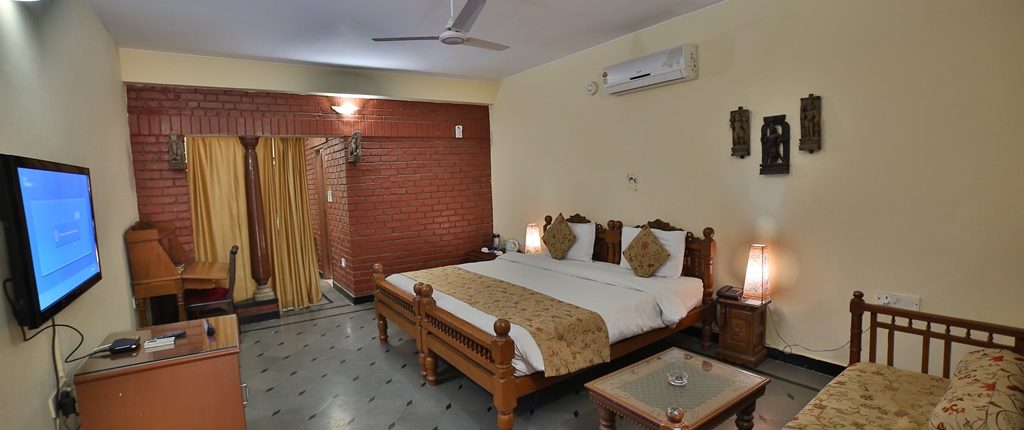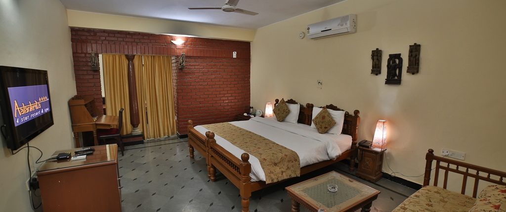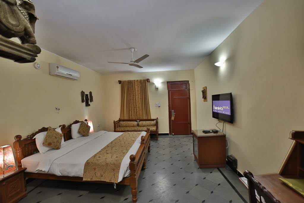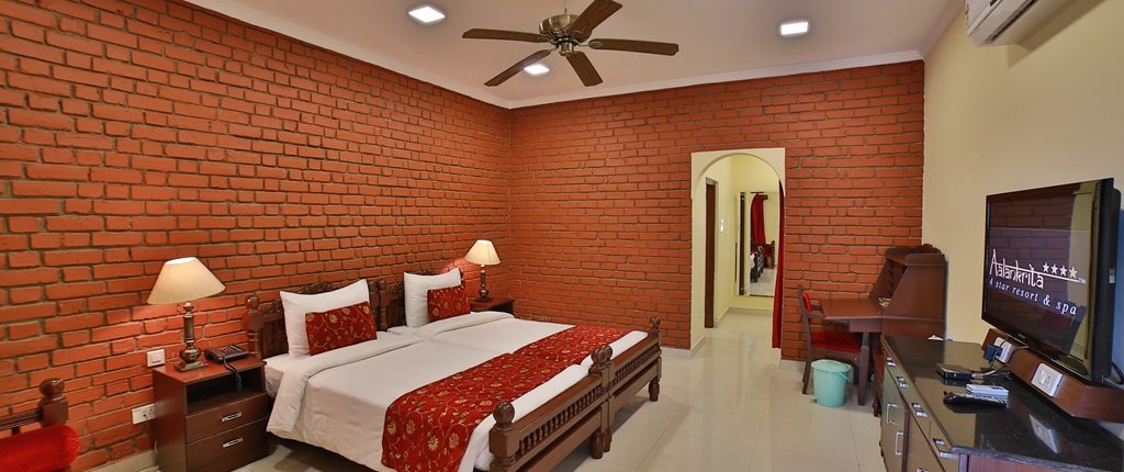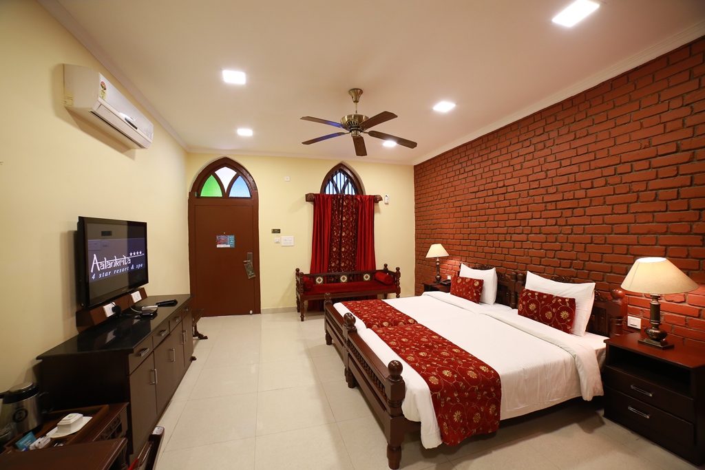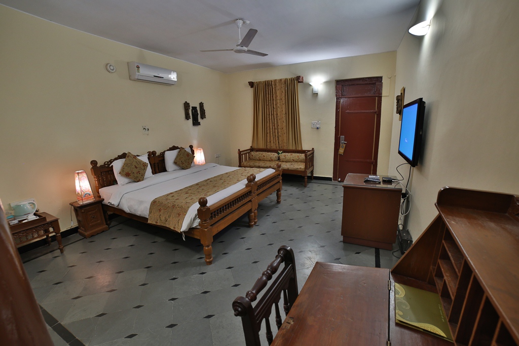 Inspired by the works of Indian artisans, the Studio Cottages rediscover architectural ingenuity of days gone by. The rooms are artfully decorated and furnished with ethnic elements, and feature a private dressing area, a writing desk and a lovely sitting area. Built into the secluded charms of nature, the cottages also have a private portico with seating, for you to indulge in the surrounding serenity. The cottages are at a walking distance from the pool and all the restaurants within the resort.